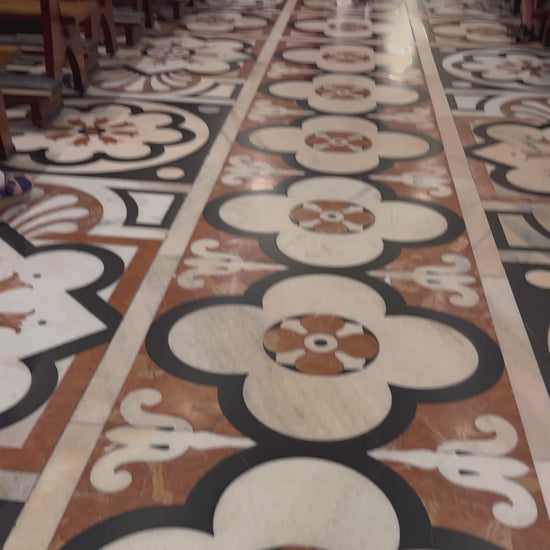 Depicting a storyline through weaved fabric; small children on the back praying and the front foreshadow their future into a couple that prayed together so they stayed together.